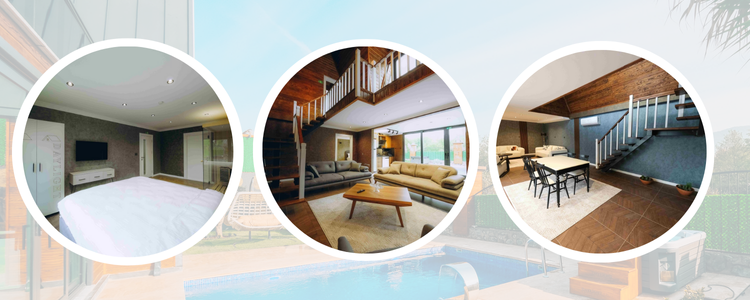 Salonun merkezinde yer alan şömine, özellikle serin akşamlarda sıcak bir ambiyans sunarken; verandada geçirilen yaz sabahları da doğayla baş başa keyifli anlar yaşamanıza olanak tanır. Bu mevsim geçişli konfor, dört mevsim tatil yapma fikrini cazip kılar.